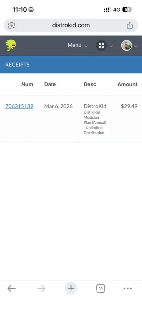 I am an independent artist using DistroKid as my music distributor, and I also collect royalties. On September 10th, I requested to withdraw the royalties they owed me, which was a substantial amount, and even received a confirmation email. The email from DistroKid arrived on Friday, September 10, at 8:26 AM, confirming my request.