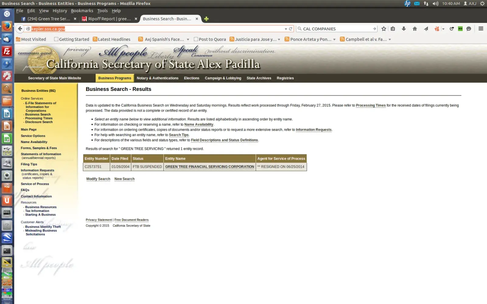 CLASS ACTION 15 U.S. CODE 1692 - ATTORNEY GENERAL OF CALIFORNIA - GREEN TREE FINANCIAL SERVICES SUSPENDED LICENSE. All members of the class are homeowner/borrower that have been misled and/or GREEN TREE SERVICING CORPORATION has misrepresented to them the balance of their mortgage accounts, as well as that of their escrow, and not remitting payments nor disclosing all pertinent information regarding the note holder, and/or recording fraudulent assignments and documentation on Public Title, inclusive in the State of California where Green Tree has a Suspended Status. Please contact us asap if you fit the class requirement and can prove the balance of your account does not match that of the original note subscribed.