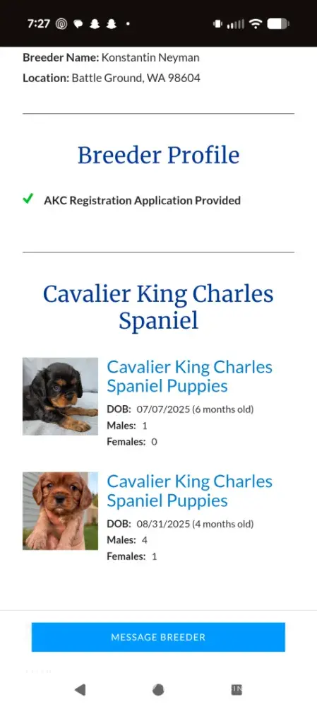 I acquired a puppy from Olga at Neyman Cavaliers in October 2025, he had tiny a lump on his neck by his lymph node that got bigger within a week, we took him to the vet and got him antibiotics and were told he appeared bilaterally Cryptorchid, had odd scars on his lower abdomen to give him to 6 months, if neither testicle descend then I needed to notify the...