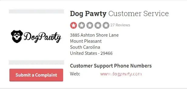 Dog Pawty’s earns a 1.0-star rating from 0 reviews and 45 complaints, showing that the majority of pet owners are dissatisfied with purchases.