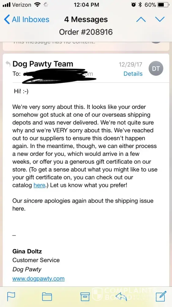 Dog Pawty never received my order