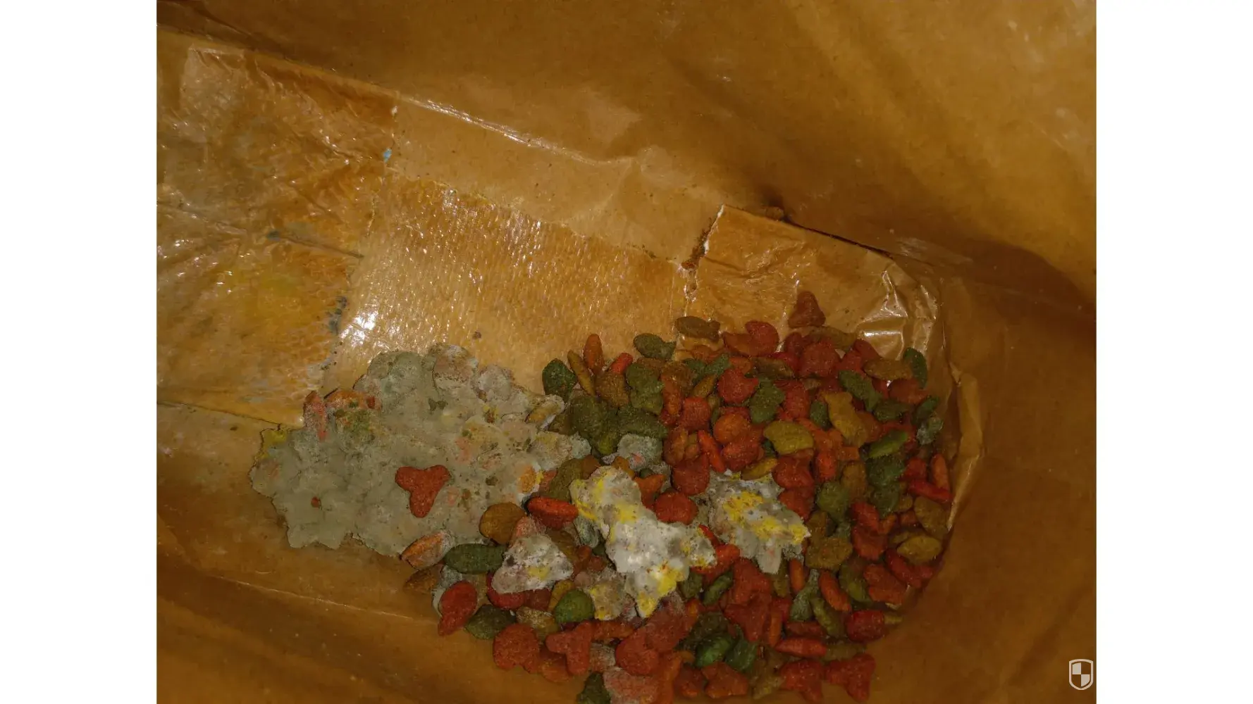 I purchased a large bag of Heartland Farms seafood medley cat food on April 21, 2023 and now that I have been feeding it to my cats for a little over a week, I find a very large chunk of molded food at the bottom of the bag! I hardly ever buy that brand but didn't have a choice since there was absolutely ZERO other bags of cat food on the shelves and no...