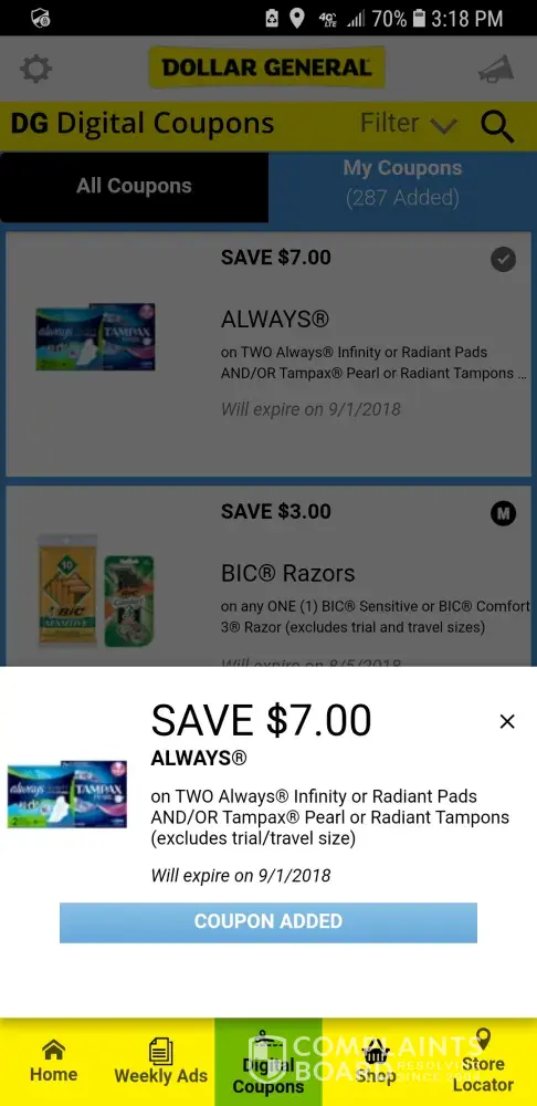 service / dg coupons