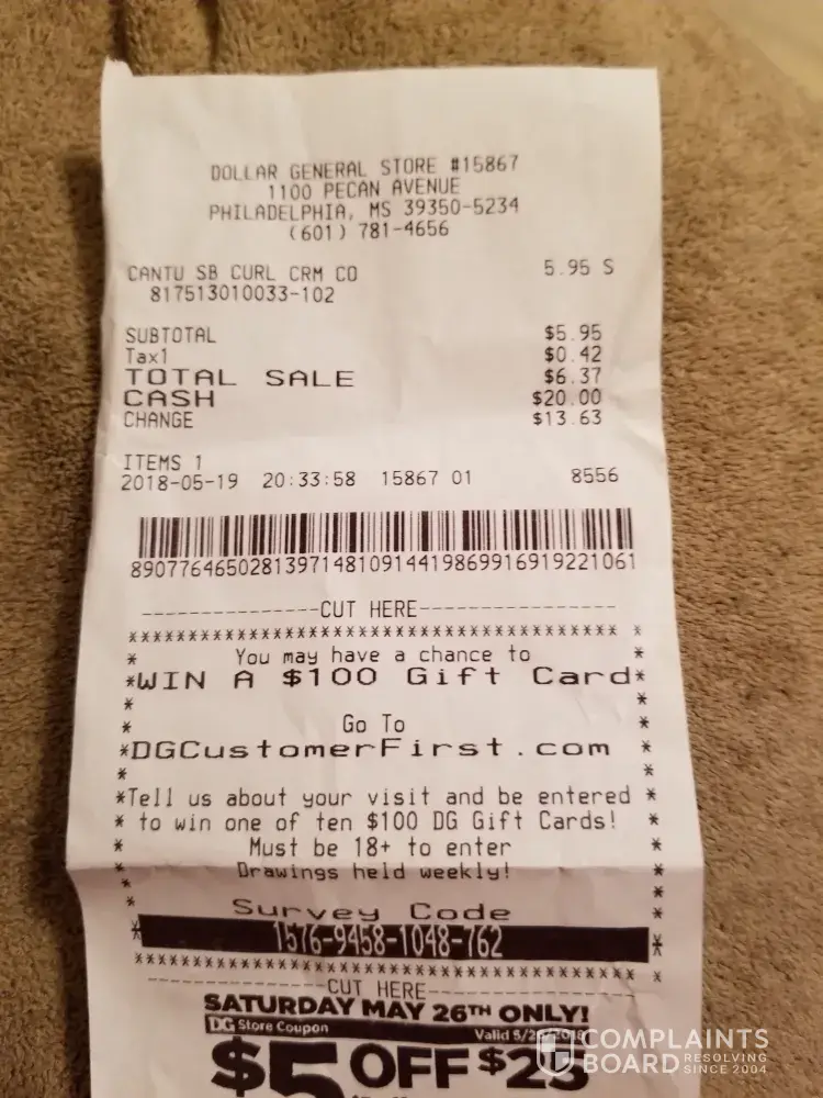 On May 19, 2018 at approximately 8:30 p.m. I entered Dollar General Store #15867 located at 1100 Pecan Avenue in Philadelphia, MS. My purpose for the visit was to purchase moisturizer for my hair, dishwashing liquid and at least three Coca Cola 12-pack products that were advertised on sale for $8.