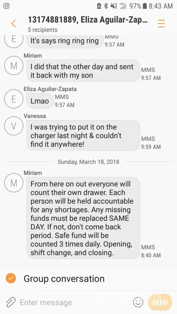 - Has mandated that any shortages of register tills be made up by the employee's on register, out of the employee's own pocket. This one I can see the validity too, if you're constantly short than theft of store profits is a likely concern, but the part I don't get along with is if it happens even once and we are unable to make up the difference that we are terminated on the spot.