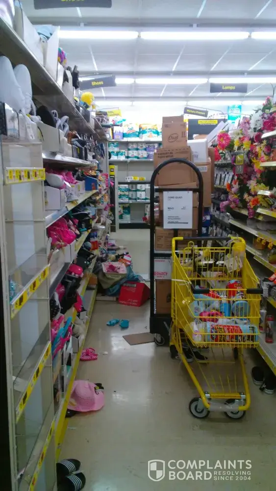 The photos tell the story. I visited this store on March 21, 2018. I feel really sorry for the employees trying to work in this dump, you can't even move in this place. It looks like a tornado ripped through here. It's been going down hill for a few months, I was hoping it would get better. I'm taking my money to the Family Dollar down the street, it's immaculate!