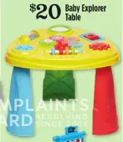 I have called every Dollar General within a 30mile radius of my home to locate an item in one of your ads and NO ONE has it! I even looked to order it online, typed in the exact name of the product, as listed in the ad, nothing! So I'm wondering, did Dollar General false advertise an item or is this something corporate can send me? The item is the Baby Explorer Table.