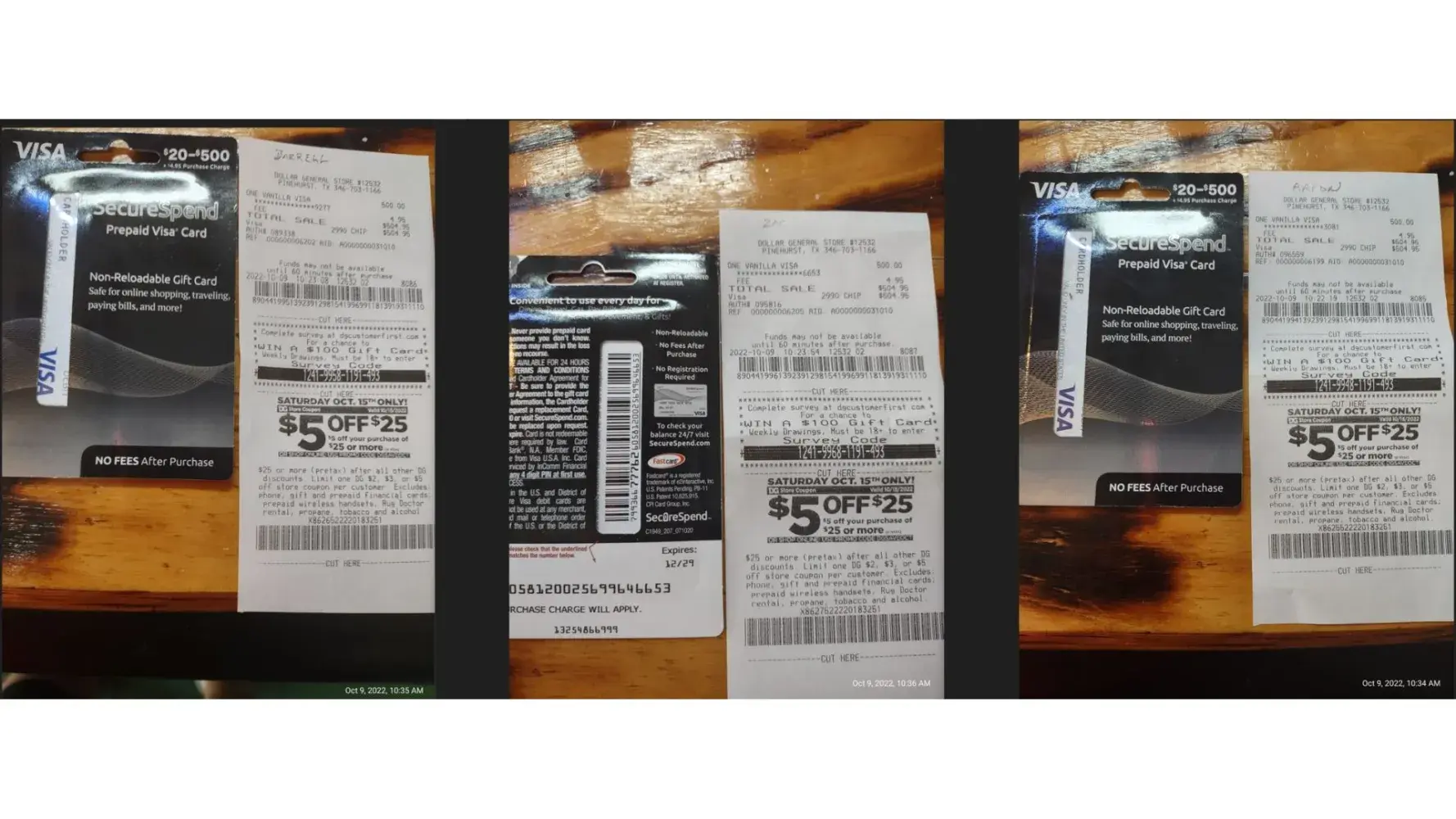I had purchased 3 gift cards for $500.00 ea. I have photo of front and back and of all 3 receipts. 2 of the 3 cards had issues and could not charge on for the balances. I I have 1 card with a remainder of $420.78 and another card for $500.00 never used. I was told that without the original receipt there is nothing that they can do. I was the purchaser on my credit card and as stated have front and back of cards unopened with copys of receipts. When I call the for help they hang up, this happened to myself, my secretary and as well as your store manager when I phisically took them to the store I purchased them from. I need some immediate attention on this.