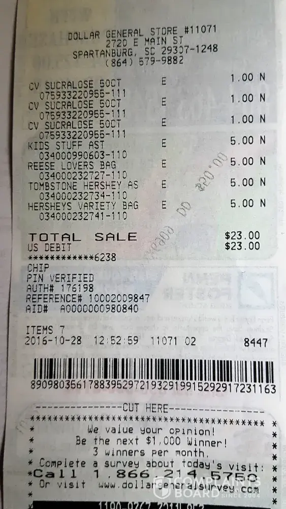 I wanted to give Dollar General the ability to rectify the situation prior to me taking that step.