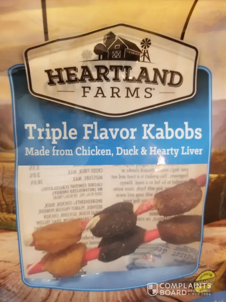 Read full complaintHeartland farms triple flavor kabobs dog treats