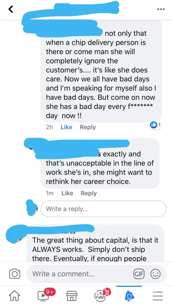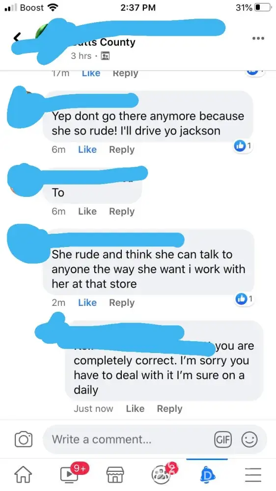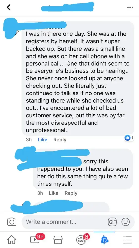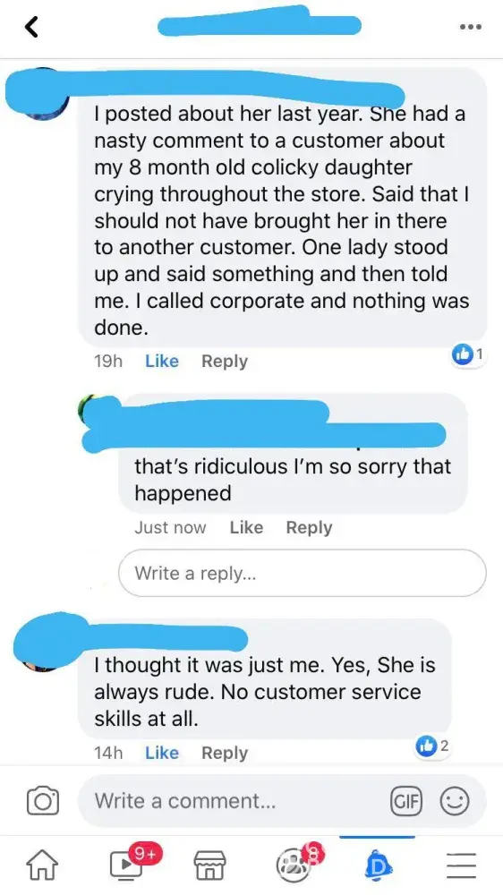 Now, if this were an isolated incident, I would let it go and just deal with it but there are several other people in the community that agree that she is not only rude to certain customers for no reason, but is just plain mean, cold and judgmental.