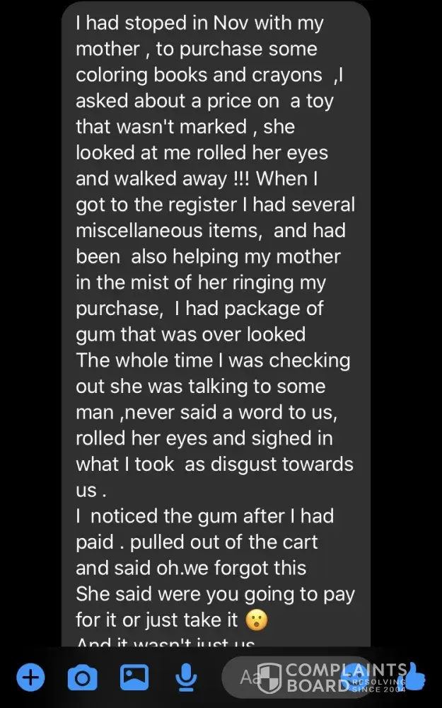 Read full complaintUnacceptable attitude and general demeanor of cashier/store manager