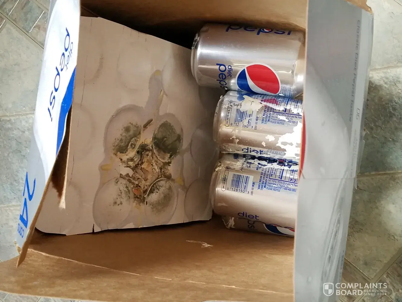 Mold found in 24 pack of diet pepsi 12 oz cans from dollar General in Alden, NY 14004. Pepsico now has it and they tested it...they stated a can of pop did not open inside the packaging BUT that food somehow slipped threw the handle of the packaging during delivery/shipping or at store and that it was been there a while...