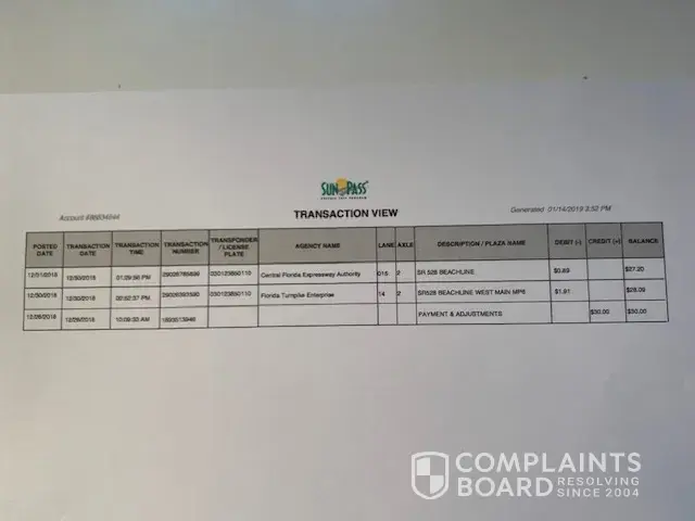 On December 26, I bought a Sun Pass transponder and used it after arriving in Cape Coral, Florida and it lasted until I flew home on December 30. I accessed my Sun Pass Account and have uploaded the file showing the activity.