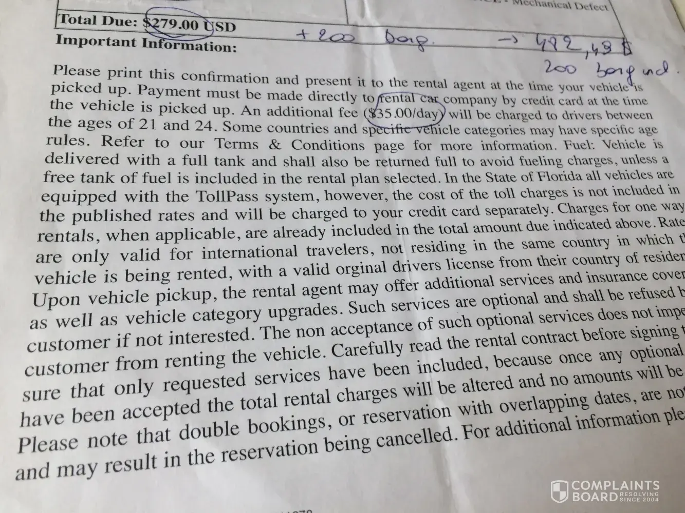 unauthorized additional insurance costs; car rental