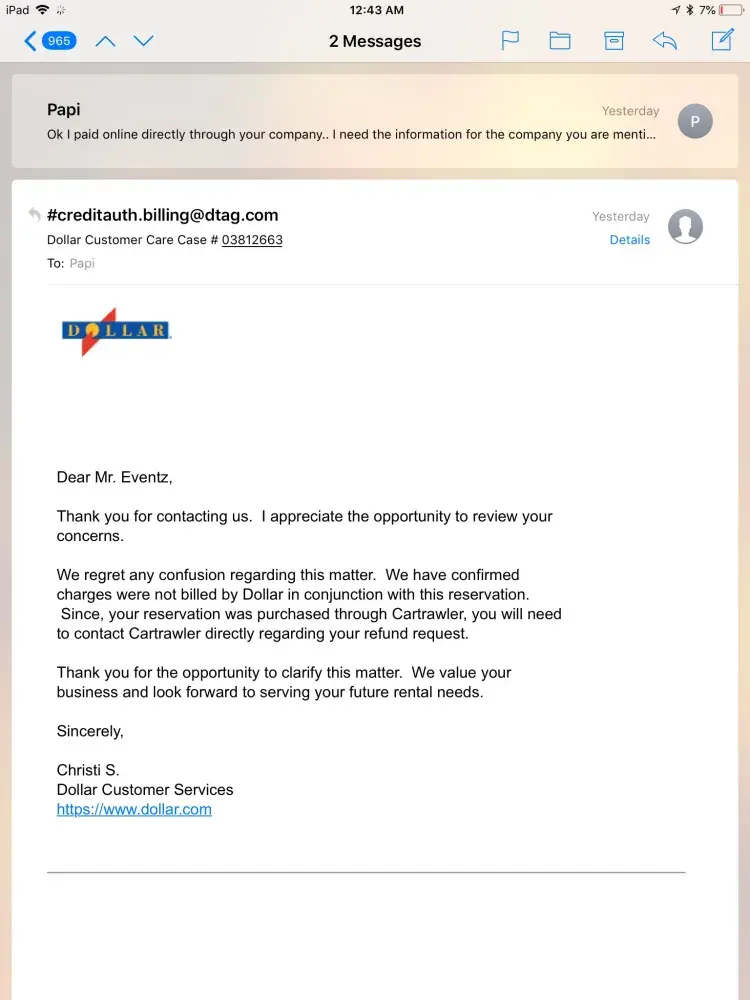 After 30+ years of being solely a Dollar customer, it was hard treatment as such a critical moment for us, your customers. Why do you have such a policy in place when you are not prepared to live up to them, or maybe by not mentioning it, there would be no claims.