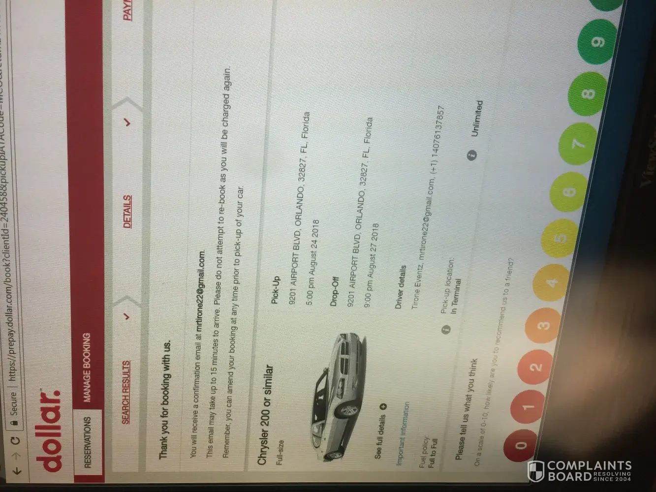 Bad service from dollar rent a car