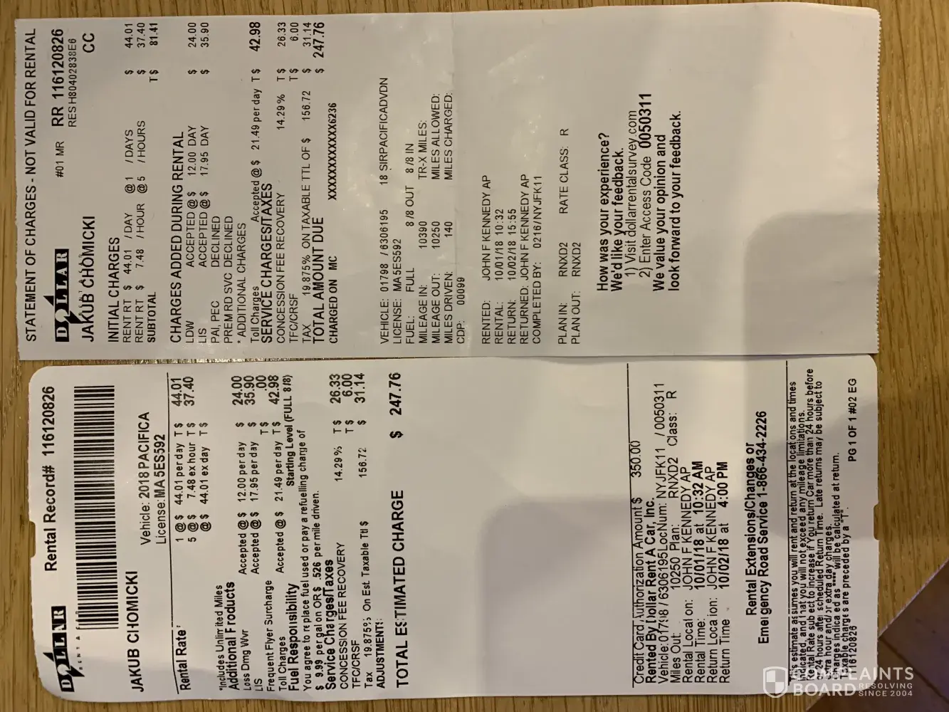 During trip to New York (JFK Airport) I rented a car in Dollar Rent A Car: