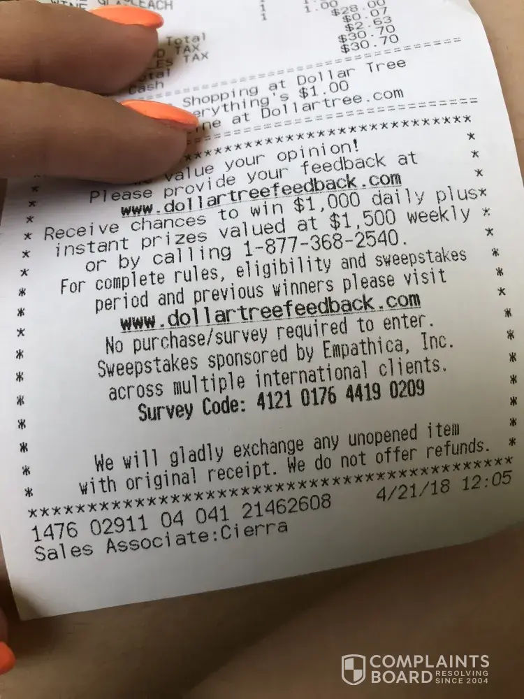 I am very up set do to the fact that my persons was in the dollar tree hands and they allow someone else to take bag and they have