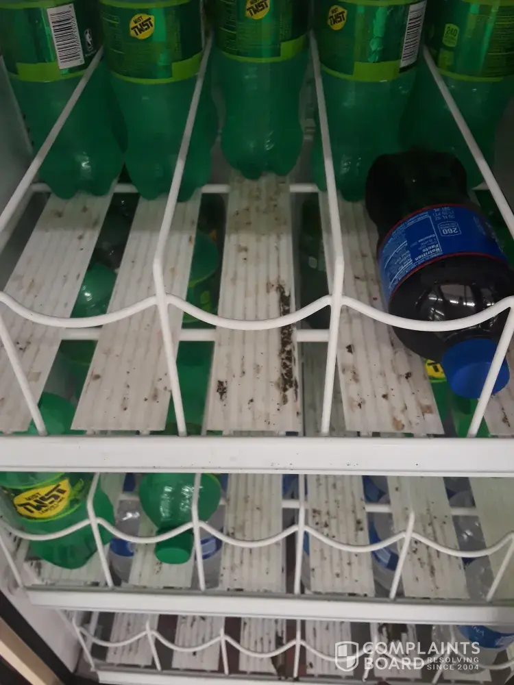The Pepsi refrigerator is filthy with mold and mildew. When I brought it to the attention of the Store Manager Shawn or Sean (I'm not sure of the spelling of his name. He said "I have called Pepsi to bring another one; but just after that, the stocker began to refill it with new product ad food not clean it. He said "I just work here". I feel that we should not have to purchase a product where we are exposed to mold and mildew. I feel that these refrigerators should be disinfected immediately and mot overlooked.