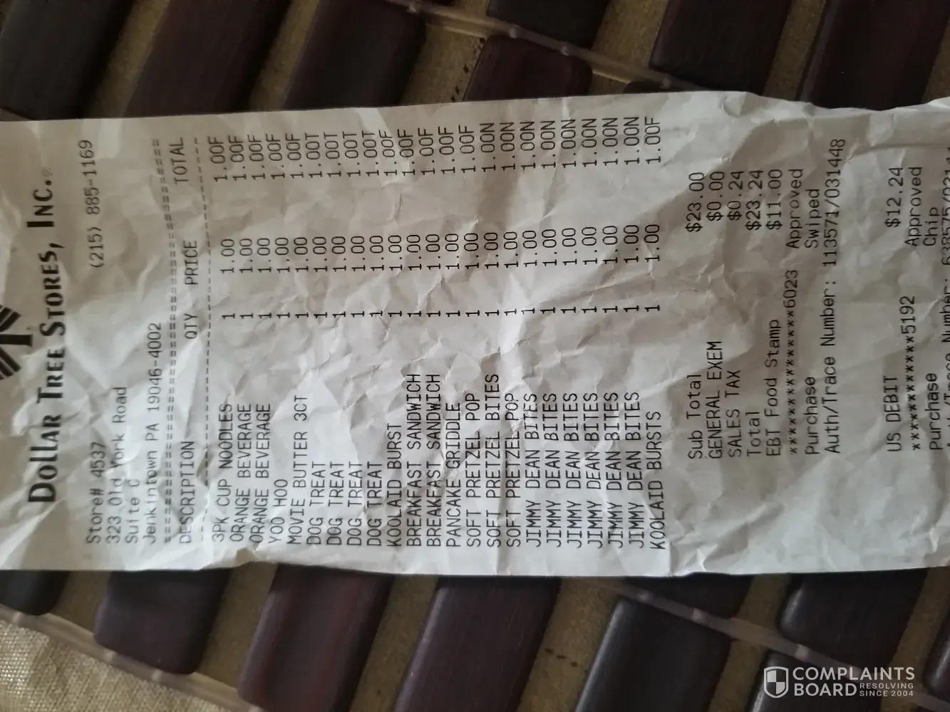 I am not going back this time for a $1 refund. However, I will NOT shop at this particular Dollar Tree again. I note that the clerks let things stack up on the counter before backing them and I think that is how these errors occur. I have not had such errors at other Fort Wayne Dollar Tree stores. The clerks at this store do not seem well trained.