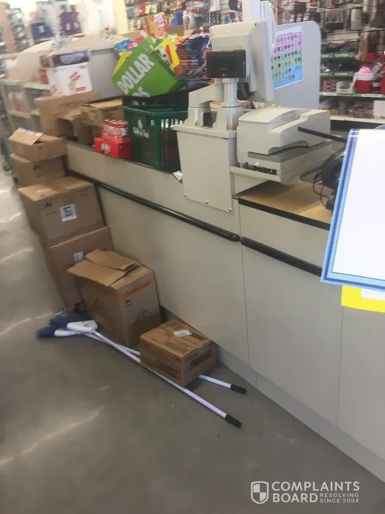 I have attached a few pictures to show what we witnessed at this store. I pray that someone takes the time to look into my complaint and rectify the situation at this location. I honestly believe if this continues, this Dollar Tree location will not last very long.