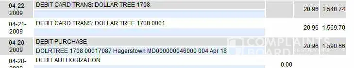 While checking my debit card account I noticed that a transaction that took place on Saturday April 18 was repeated again for three more consecutive days! The same transaction. I was given the 800# and an extension but so far no one has returned my call. I wrote to the CEO's secretary and the company attorney. Waiting to hear from them. This is a theft and I intend to report it to the police. Posting in case anyone else has the same problem. I was told by store manager it was widespread.