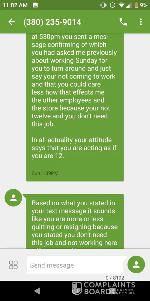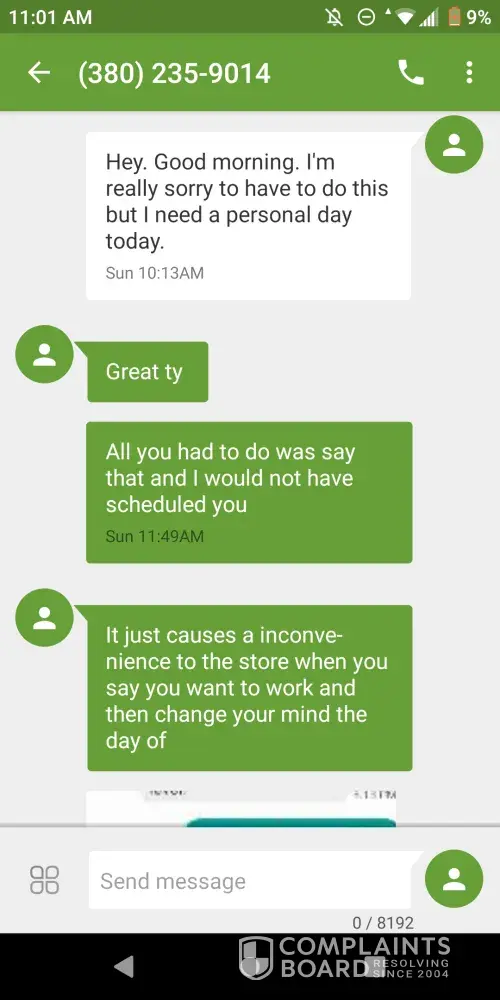 My name is Kristine Brecht. I recently worked at the Galloway, Ohio Dollar Tree under the management of Joseph. On Sunday, January 10, 2021 I had sent a text to Joseph that I was not able to make it to work due to personal reasons. One reason I will keep to myself at this time, for it is infact personal but the other was I was waiting on the results of my...