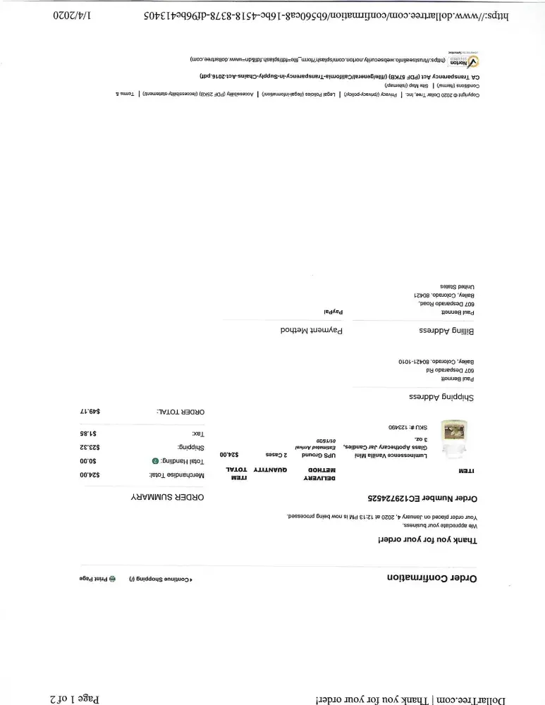 On 1/4/2020, I placed an online order for 2 cases/dozen of the 3 inch Lumin Esscence Apothecary Vanilla Scented Candles. Order #: EC129724525.