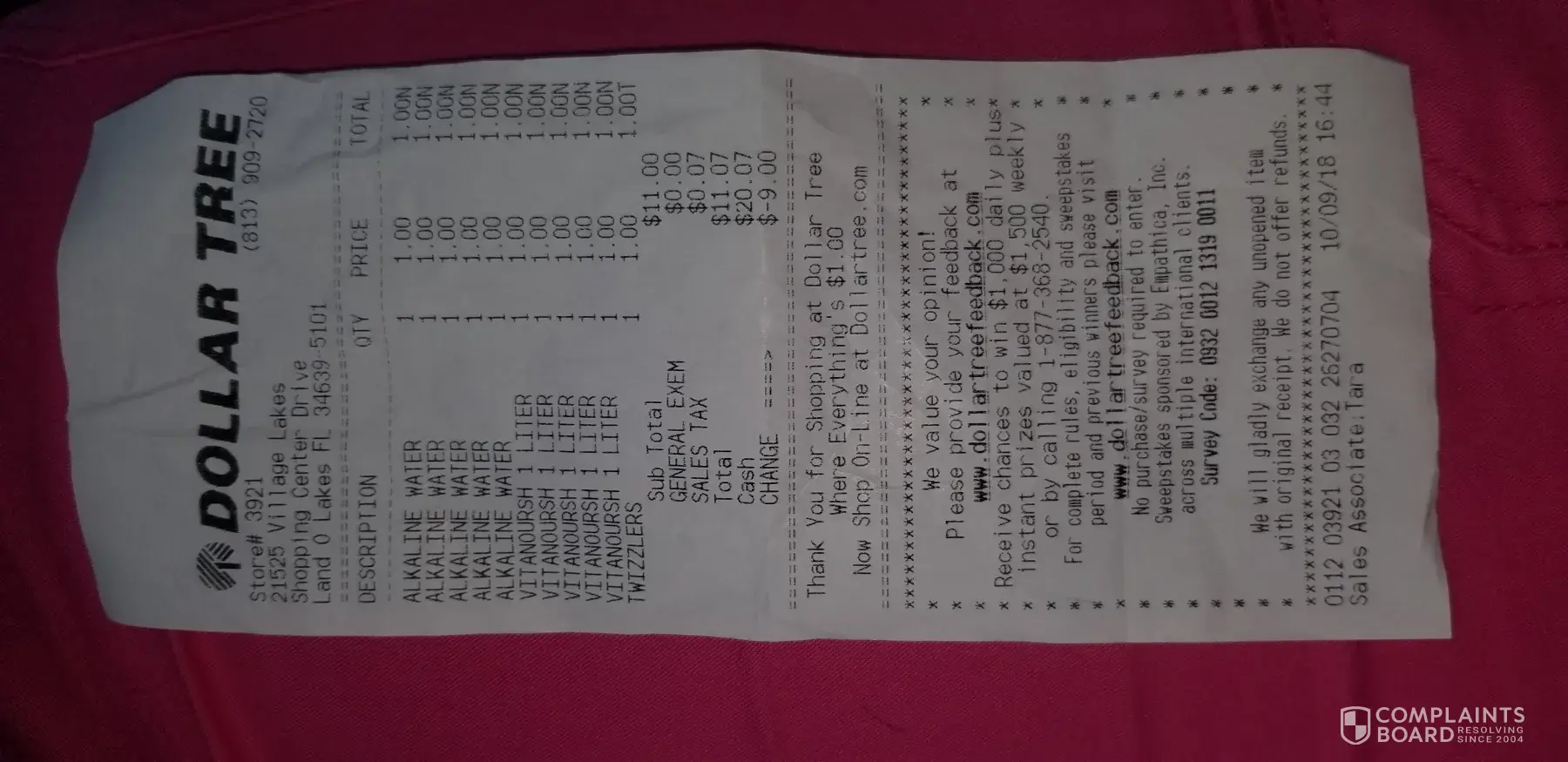 I visited the land O lakes dollar store I went there after work on 10/09/18. I bought 15 bottles of water in a pack of candy, as I'm waiting line to be checked out I am watching The employee Tara as she is bag up person's items she proceeded to stuff all of his things in one bag and they were falling out all over the place The customers said to Tara the cashier these are going to fall out I need another bag please in with an attitude she said she doesnt have enough bags and that is why she packed his things all in one bag, TARA reluctantly put the customer stuff in 2 bags... Now it's my turn I look at where the bags are hanging she only had 3 bags, so she rang my stuff up and the Proceeded to put 4 liter bottle in one bag I told her I cant not carry all of that at one time because I have Lymphedema on my left side from a recent surgery, Then she stated to me while she does not have any more bags I actually I asked her if they were no more bags anywhere in the store she told me NO.Tara Did not even attempt to look anywhere she did not look at any of the other registers to see if they had bags she didn't even apologize for not having any bags and she did not even help me put the 15 bottles in my cart she just acted so nonchalant and she did not care... there was a line of at least 3 people behind me...So I gathered my stuff put them in the cart and as I'm walking out the store the person ringing on the next register yos out yes we had bags here over there in that Box and that even made me more of set because they had bags she did not take the initiative to go and look and I believe the other person on the register was a manager... So now I had to take these bottles to the 3rd floor of an apartment to an elderly persons so of course I had no help with that.I have worked in retail for more then 15yrs and management for 6.. One of two things happened there poor training or poor management, but now I see it was poor training... I have enclosed a picture of my receipt a picture of the bottles laying freely in my trunk and a picture of my arm in lymphedema compression sleeve and you can see that it is swollen.. Thank you for your time hope this problem will be rectified as I will not be going store again..