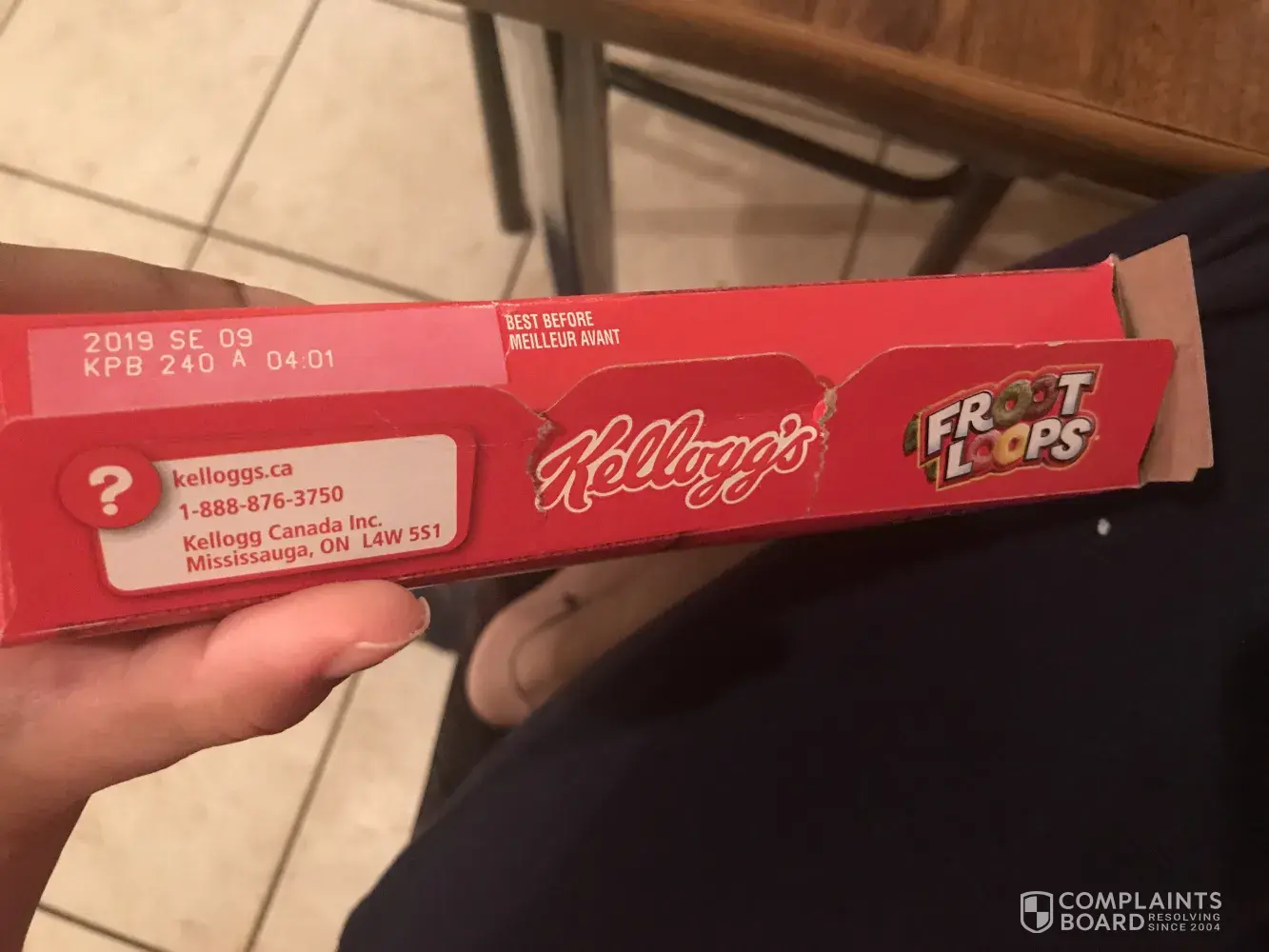 I have purchased froot loops for my breakfast from dollarama as I was passing by it in scaraborough town Center, it being Christmas the store was super busy, so I quickly picked my froot loops and billed it. The next day I eat it and start throwing up and on close examination I see that the froot loops was expired. And the expiry date was September 09 which was two months before as on today being 23rd December. Considering the buyer beware, my question is why dollarama should put anything expired on the shelf at the first place and I definitely have a right under consumer protection to raise my concern . My entire Christmas is now ruined and I wouldn't understand why dollarama would put out of date packages on shelf. I would request to see an action against this.