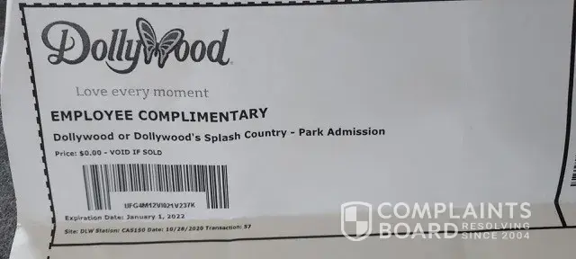 Desired outcome: Honor the expired complimentary ticket this time due to the impact COVID has had on everyone. There was a time during the pandemic that Dollywood was not open.