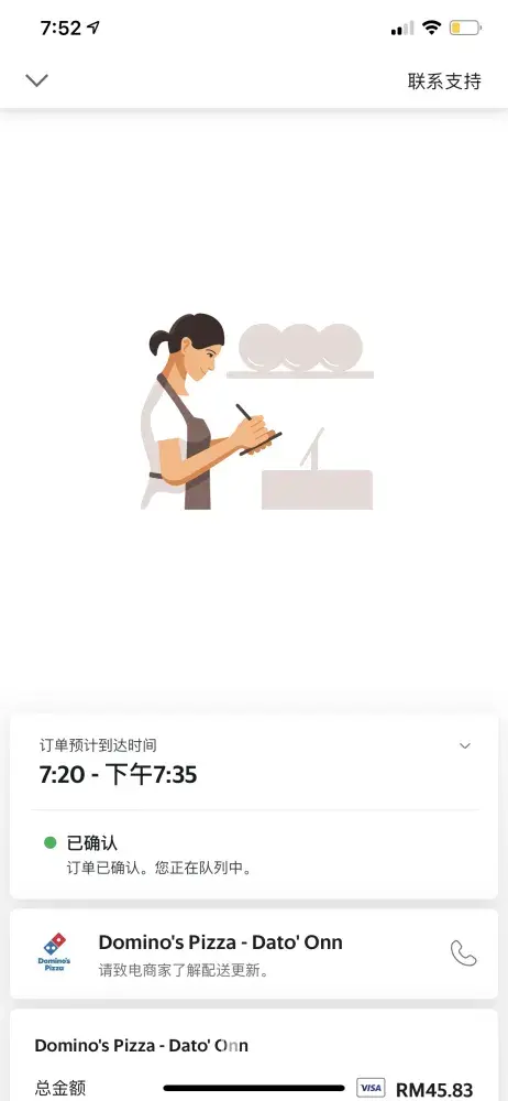 I make an order from grab food waiting 1 hour haven received my pizza, and I call customer service never pick up.. Bad service