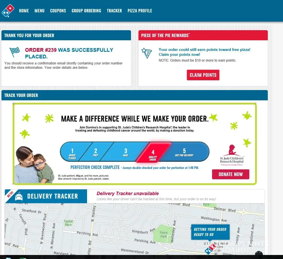 I had orders a pizza from a local dominos pizza in dallas, tx thurs. Jan 9th approximately around 7:45...