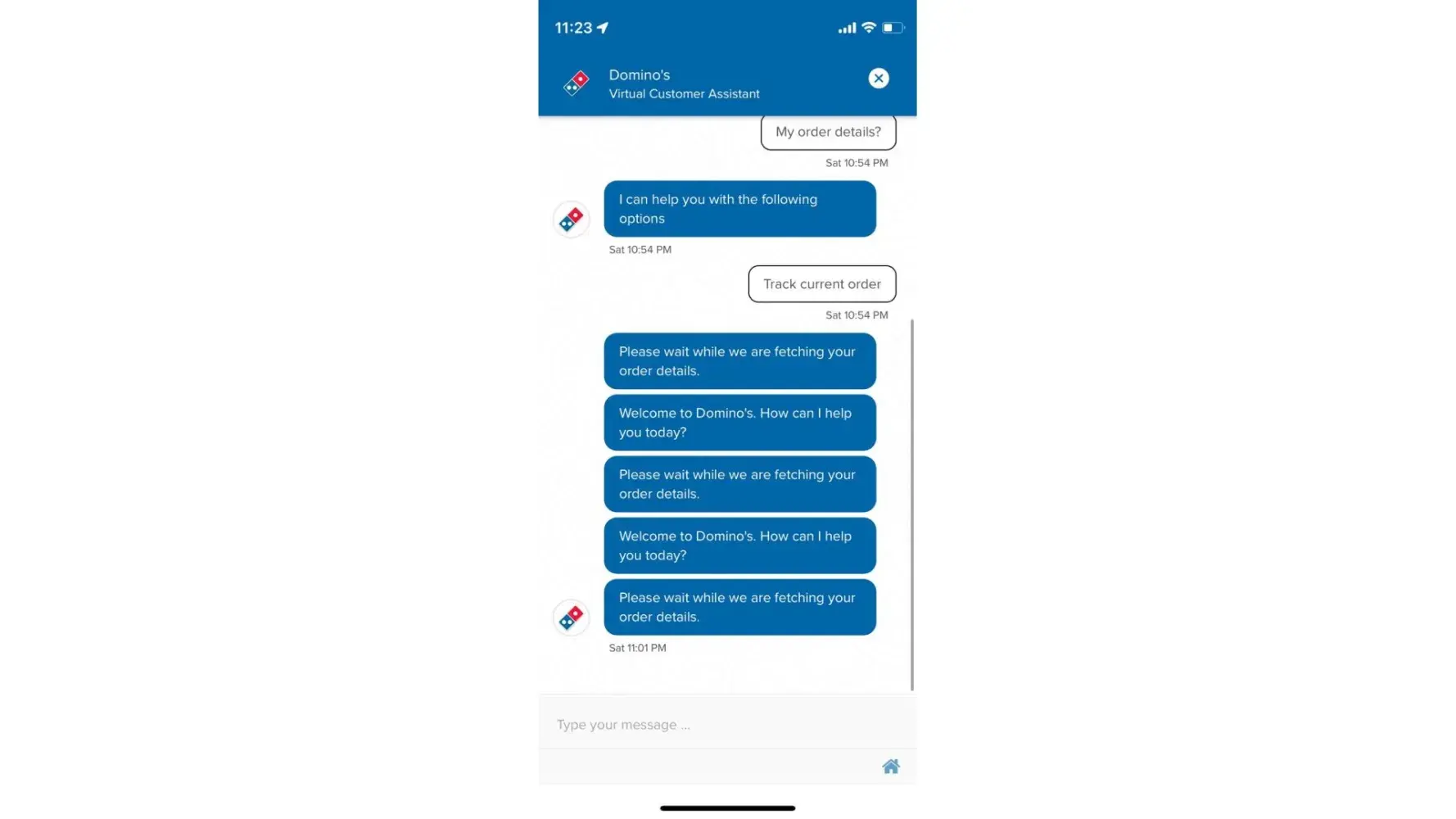 I ordered for corn pizza and paid for it via UPI. The order was confirmed at 10:16pm and my order number was 229. It was 10:50pm but the pizza had not been delivered yet. So I tried to contact the store but it was not responding. Neither the virtual assistant manager was of any help. I tried tracking my order but nothing was working. No response at all. I even tried the toll free number but it was also of no use. Its been one hour and I haven't received anything.