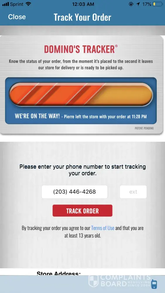 About an hour later I try calling the general number as the tracker indicates that my food is still "in the oven". The rep attempts to connect me to the store to no avail as I experience the same thing. So, in effort to be proactive, I wait outside prior to the tracker's "out for delivery" phase. I stand in front of my residence for 30 minutes when I look at the tracker and notice that apparently my food is marked as "delivered". How on earth! I'm out front empty-handed and there's no sign of any delivery guy (on foot or via car). Perhaps a mistake? Maybe. So, I give it another 10 minutes before I start my trek to the store.