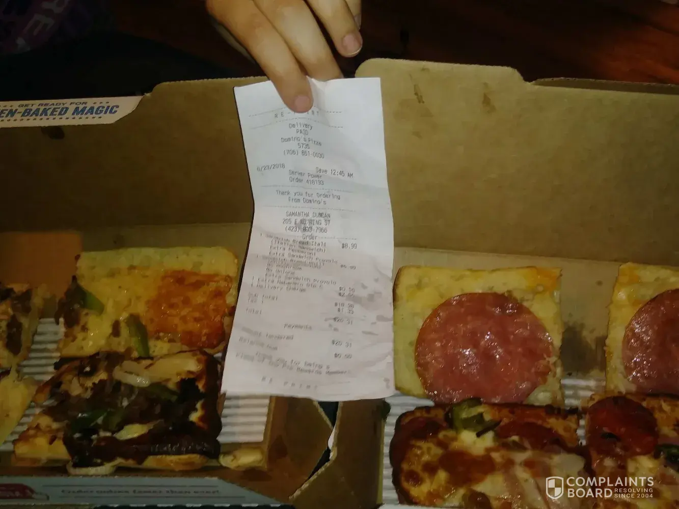 Yesterday I made a complain regarding not being satisfied with the pizza & more over my order was changed by Dominos without my permission . Neither my complaint was entertained neither I was been compensated.I am disappointed by the behavior I found my money wasted.I think Dominos will hear my Complaint and will compensate me for the waste of my money.