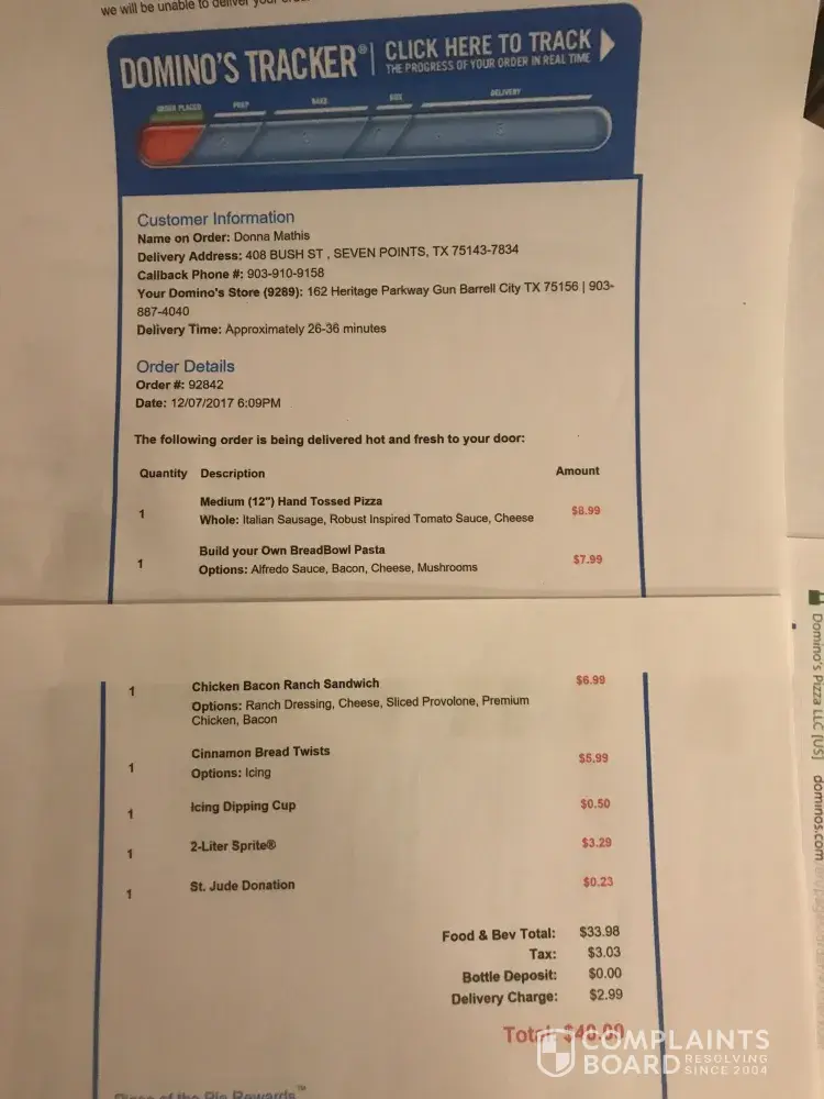 dominos rip me off brought me the wrong stuff was rude to me hung up on me I want a full refund
