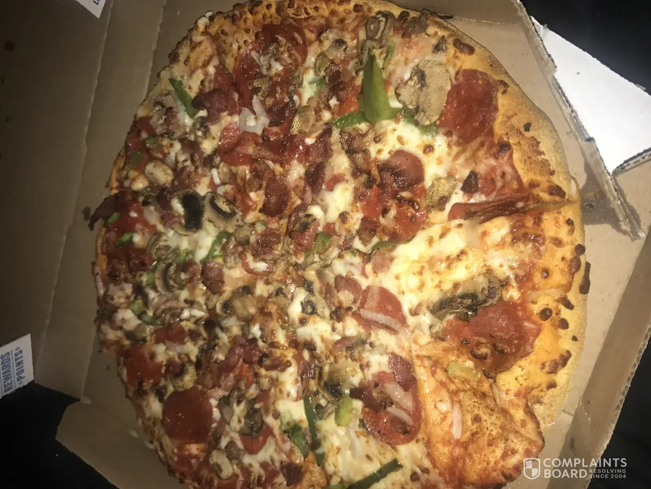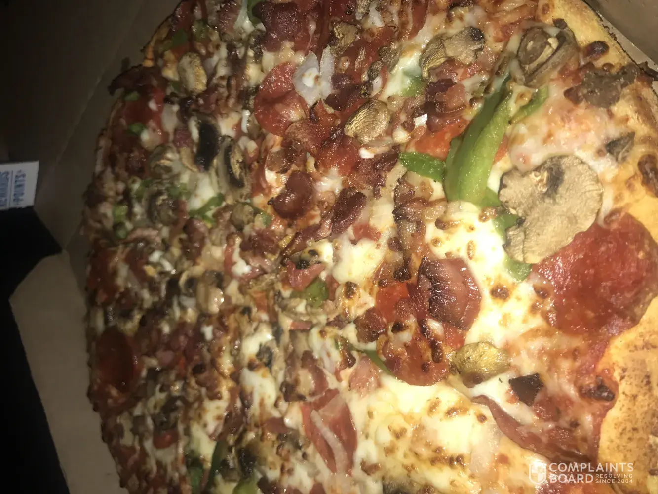 So when I ordered my pizza on the dominoes app I ordered a large meatzilla pie and I put that I wanted ham bacon and pepperoni and I got a pizza with pepperoni onions peppers and mushrooms I am allergic to mushrooms I had to throw my pizza away I got charged for something I didn't even eat I am a loyal customer I even ordered two pies the night before and they got my order correct no problem also though the night before my order time was around 10:30 and last night it was at around 1:40 am right before the store closed it's like they didn't care about my food i am very upset I feel like I deserve some