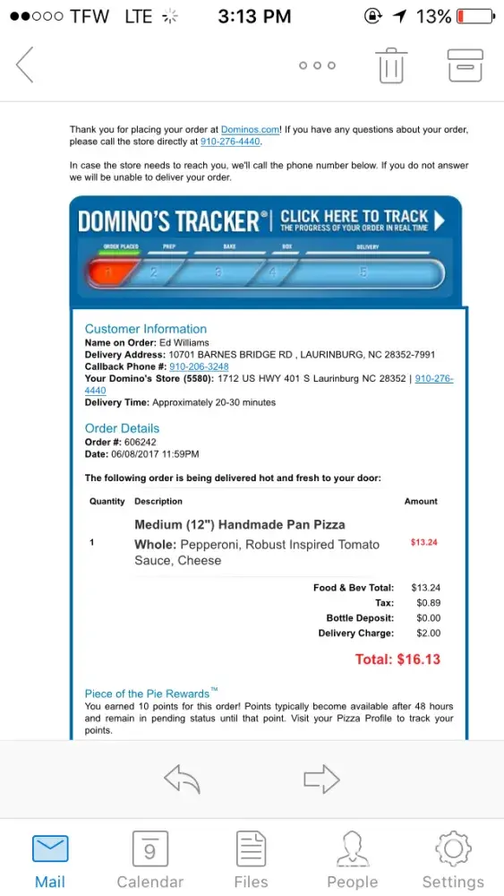 Dear Dominos pizza,
