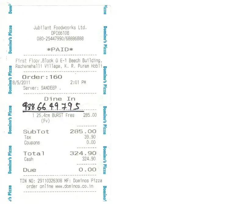 Today, 05 Aug 2011, in Dominos outlet based out of Manyata, our lunch turned out to be a nightmare. I placed an order for Fresh Veggie Cheese Burst Pizza at 02:01 PM (I am submitting herewith all the details, bill, phone no’s contacted, Pics of store manager and store guys, etc), but up to 02.40 PM we weren’t served. After 45 Min or so I suppose, I went up to the counter to ask for my delivery. But the Guys in the counter (Kumar and Sandeep) asked me to bear with this delay as there were other customers also waiting for delivery like me. If that’s the case, the pizza’s should be delivered free of cost as per Domino’s, but he refused to give it at free of cost.