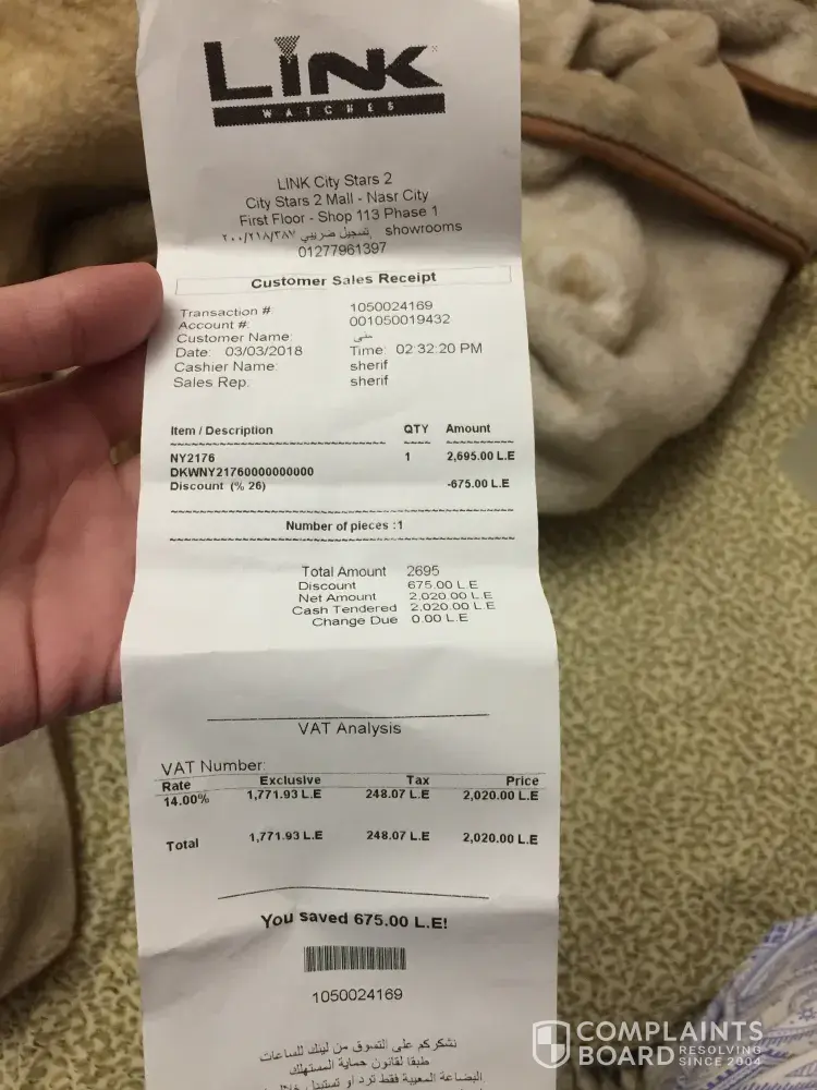 I bought the watch in 3march 2018 from link store in city stars mall, Cairo. It was not a modern model but it had a discount and was tried by the salesman. I put in my closet for one month as I have another DKNY watch. I decided to wear it at 6April but I found out that it isn't working.
