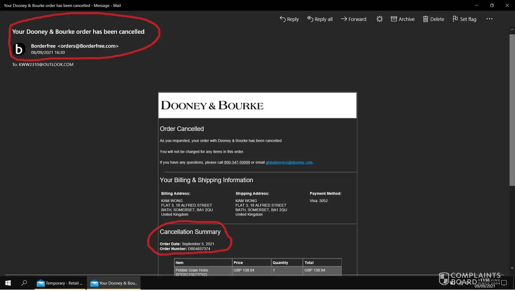 I then placed a 2nd order DB04857395 (BPEBC1957TPKR + BPEBC1956BMKR) only to find Customer Service had cancelled the BPEBC1957TPKR from 2nd Order DB04857395 instead of cancelling the 1st Order DB04857374 resulting in two outstanding Orders of DB04857374 + DB04857395. This is the main Customer Service mistake which lead to further issues.