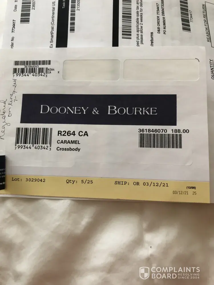 In actual fact, Dooney & Burke had mistakenly shipped both 1st Order DB04857374 and 2nd Order DB04857395.