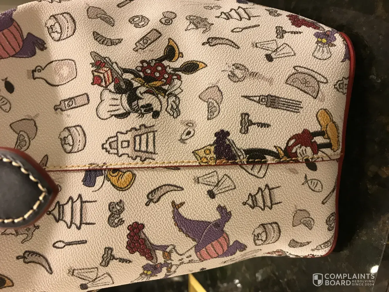 My husband purchased the bag at Disney which is a limited to pass holders only during the food and wine festival, I wasn't pleased with the quality of the making of this bag because your name and the price of the bag I would think it should be made more professional to match the design to the side seams in both side, this bag has half of the Disney characters body sew at the seam with another half of another character that doesn't match, to me the material should have been cut first to match the sides before it is sew together to make sense. Dry disappointment