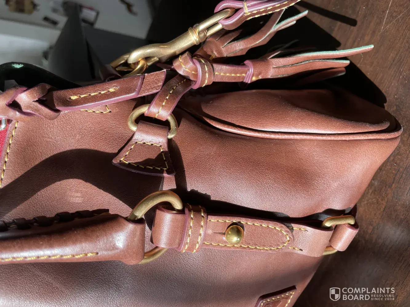 I purchased a small Dooney & Bourke crossbody purse 4 mo ago. I have gently used it only a handful of times. The leather strap simply came unstitched two days ago, threads hanging off of the leather strap. This caused the loop holding the strap to the eyelet on the side of purse to come undone, and the strap to be disconnected from the purse on one side. It is completely broken.