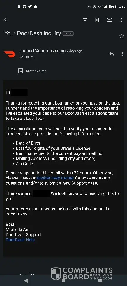 Covers everything since the BBB wont allow enough characters for a reasonably required description of this issue which is now fully public as notice to DoorDash .Inc was provided.