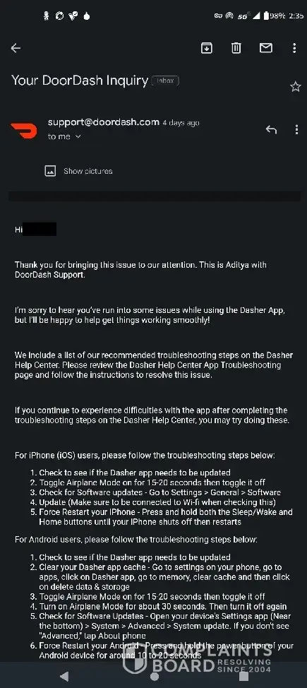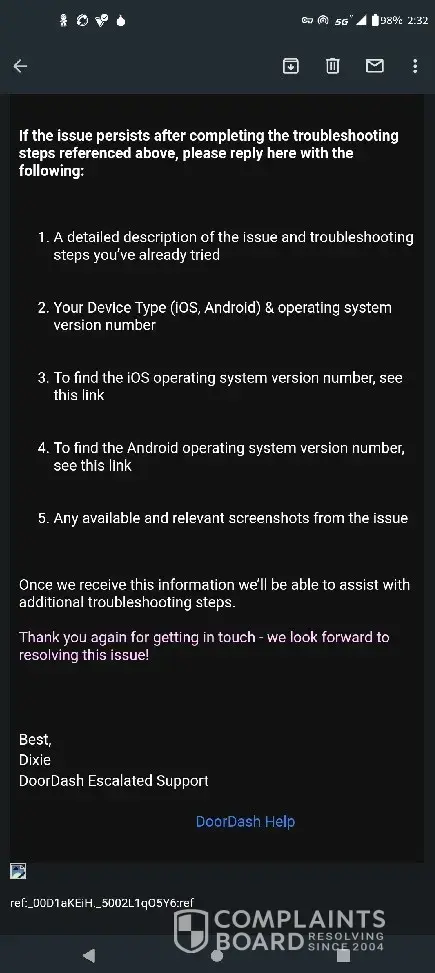 i spent 25 minutes on the door dash toll free number was told would get a refund i never saw it they stated would go to my email.