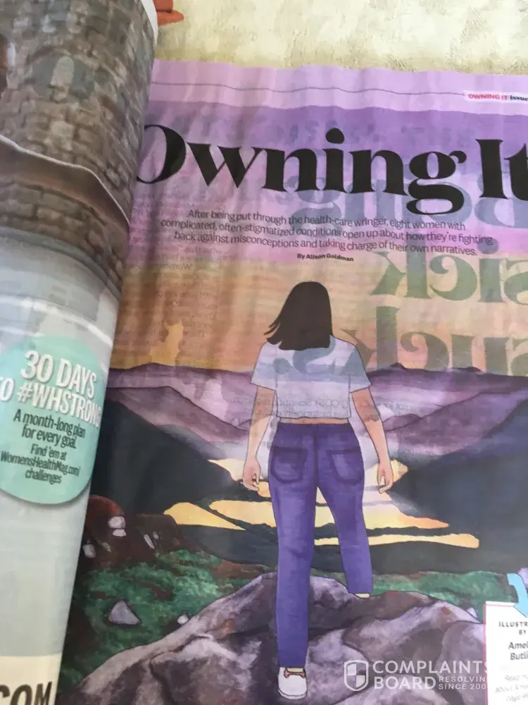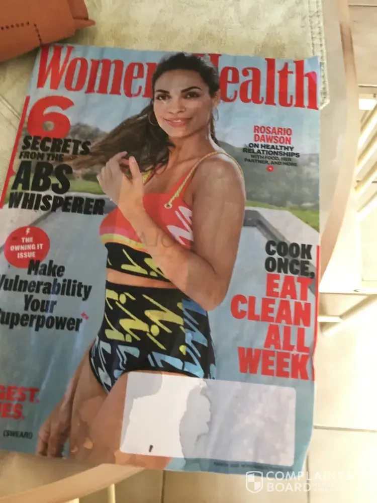delivery of Womens Health magazine was completely damaged.