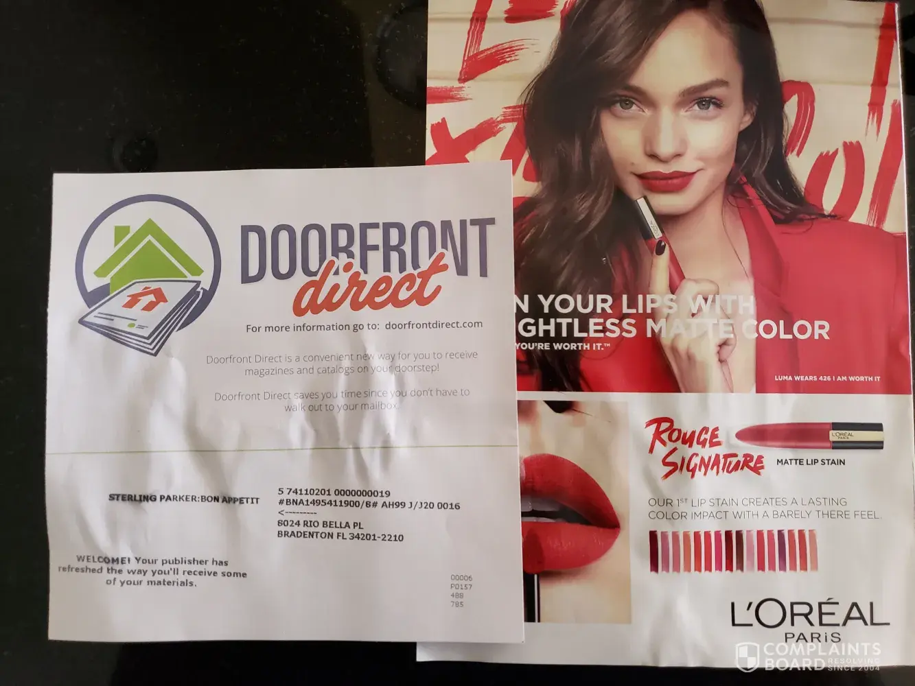 When I went into my back yard I found the September magazine between my neighbors house and mine on September 18th covered with a damp cover and laying in the grass. Sure isn't Doorfront Direct.
